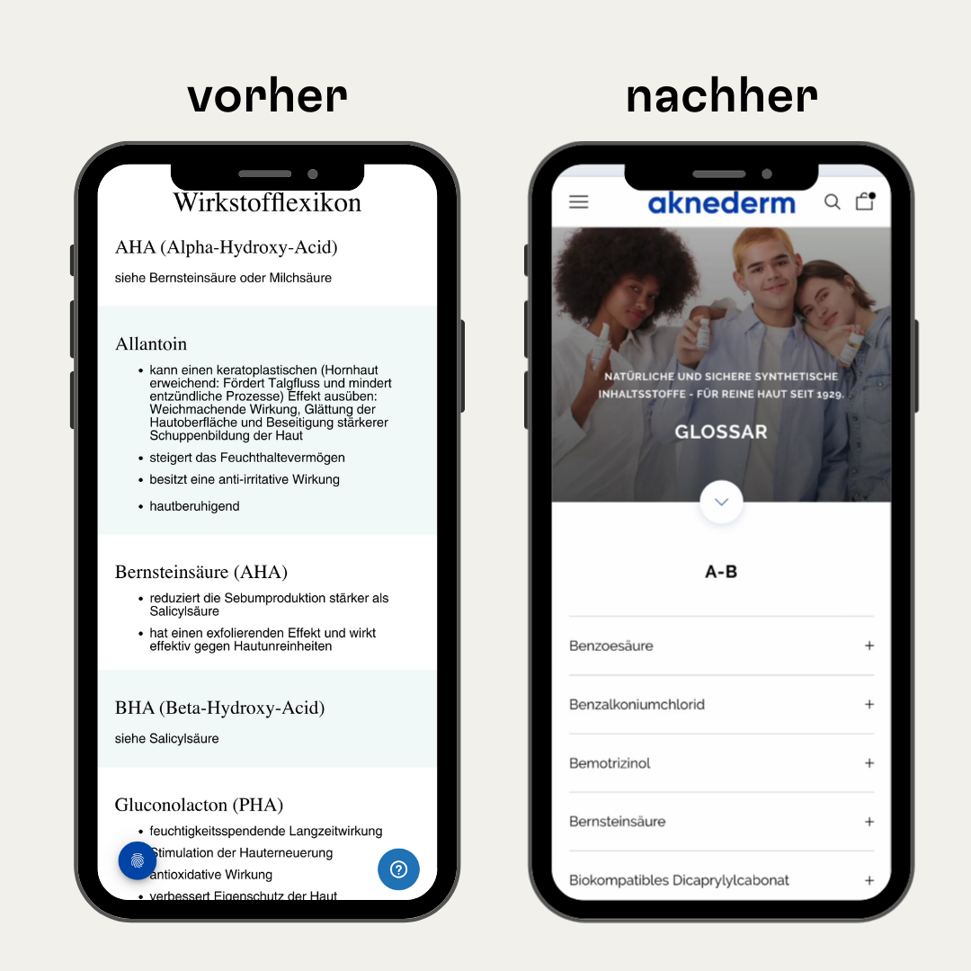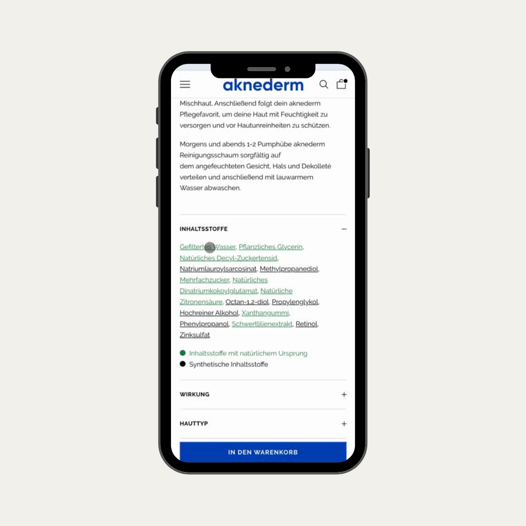 Mit dem ReDesign von Aknederm haben wir einen Shop entwickelt, der Tradition mit modernem Look verbindet. Innerhalb kurzer Zeit haben wir einen Shop geschaffen, der die Geschichte & die hochwertigen Inhaltsstoffe optimal in Szene setzt.