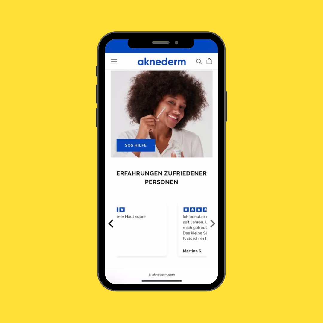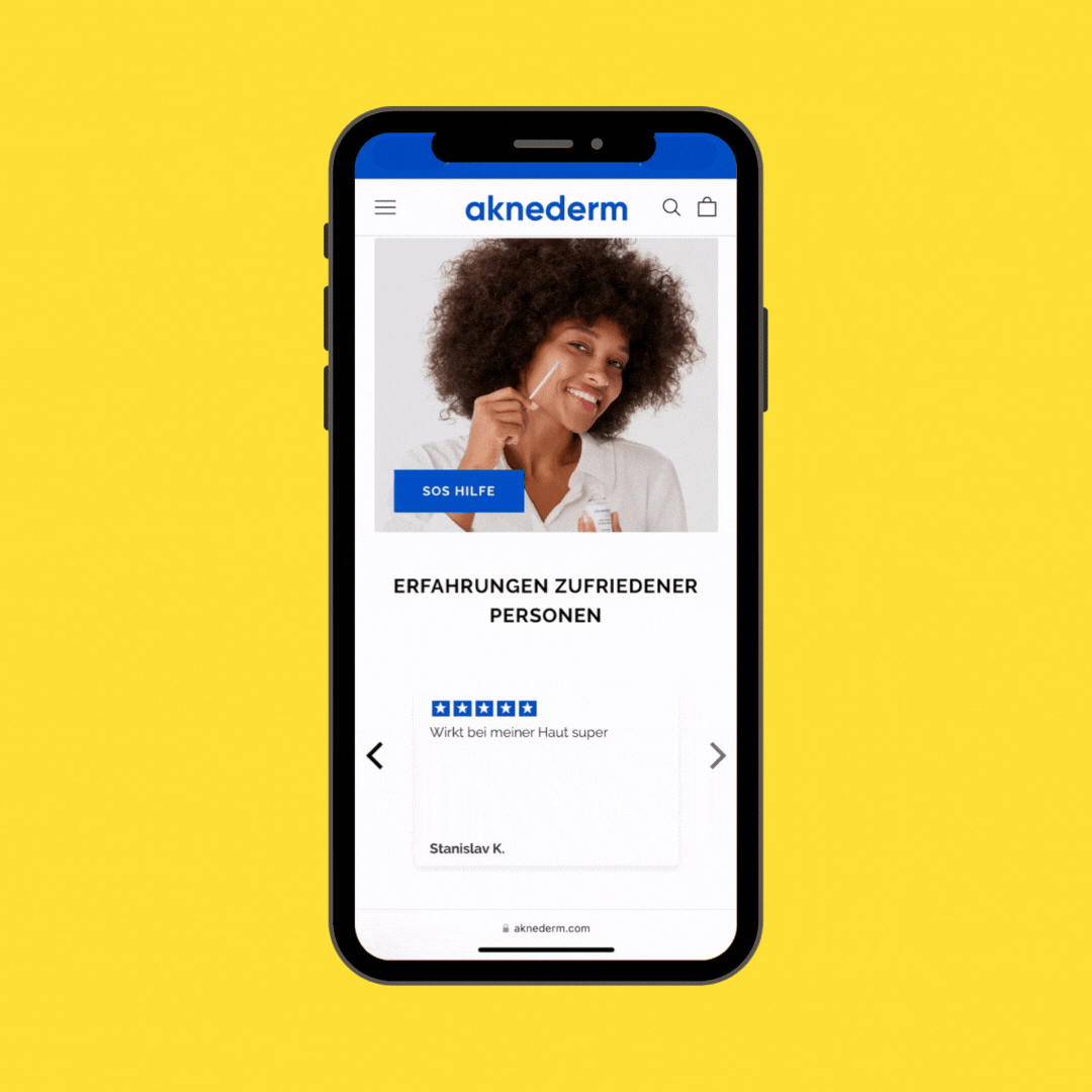 Die App Judge.me wurde zur Anzeige von Produktbewertungen integriert. Das Styling wurde vollständig an die CI von Aknederm angepasst, um ein konsistentes Design zu gewährleisten und Vertrauen in die Produktqualität zu fördern.