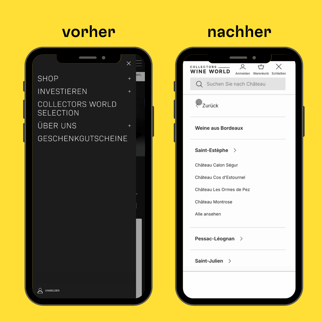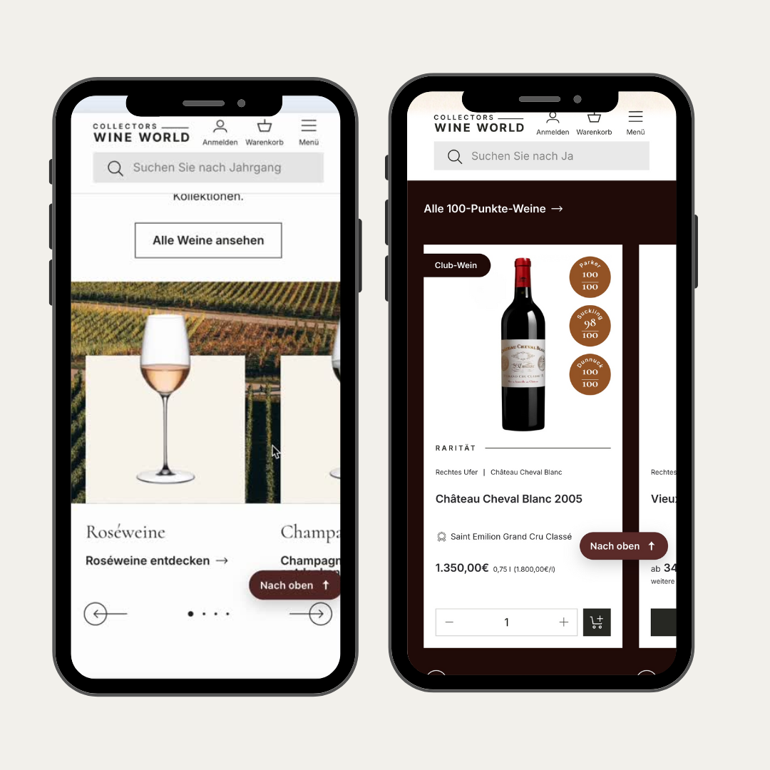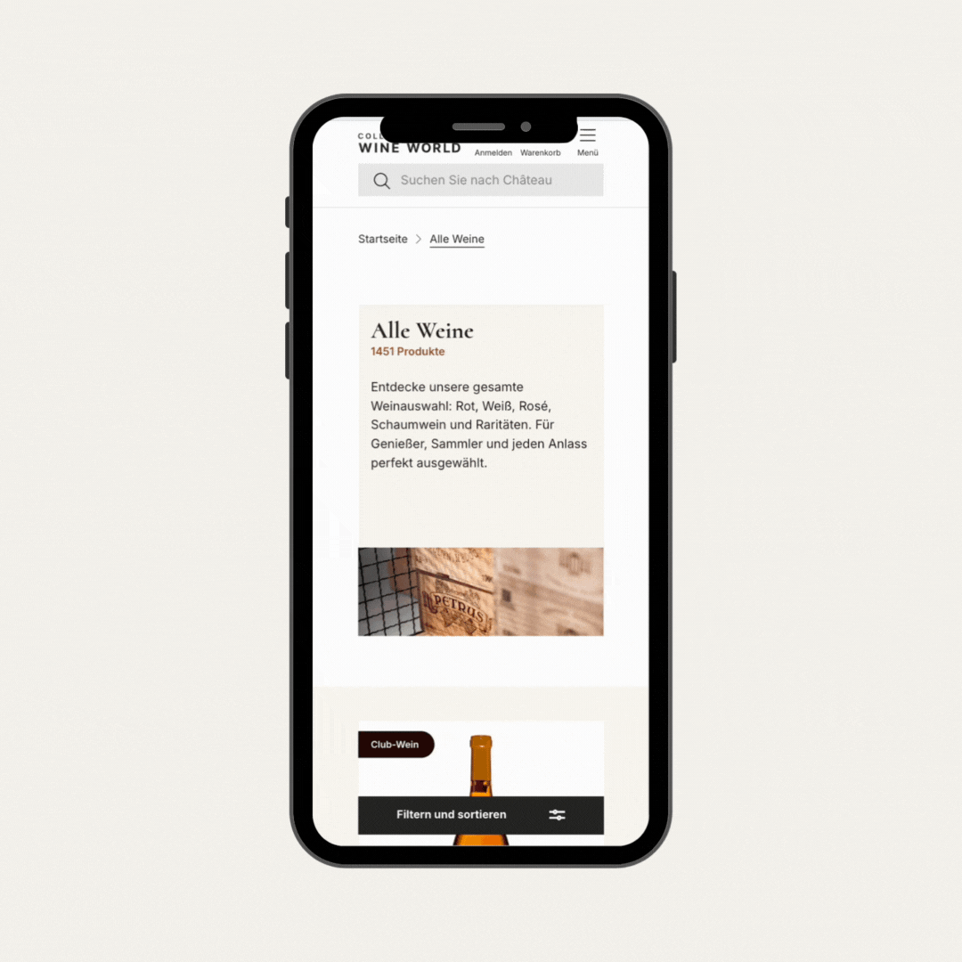Collectors Wine World steht für exklusive Weine aus aller Welt, sorgfältig kuratiert für Weinliebhaber:innen. Mit dem Relaunch des Shopify-Shops sollte das Sortiment optimal präsentiert werden und gleichzeitig die besonderen Anforderungen eines großen Weinshops erfüllen.