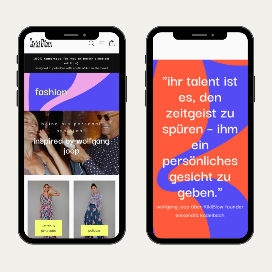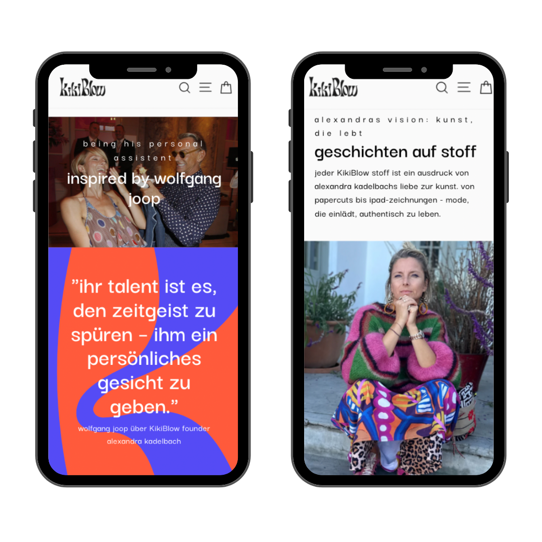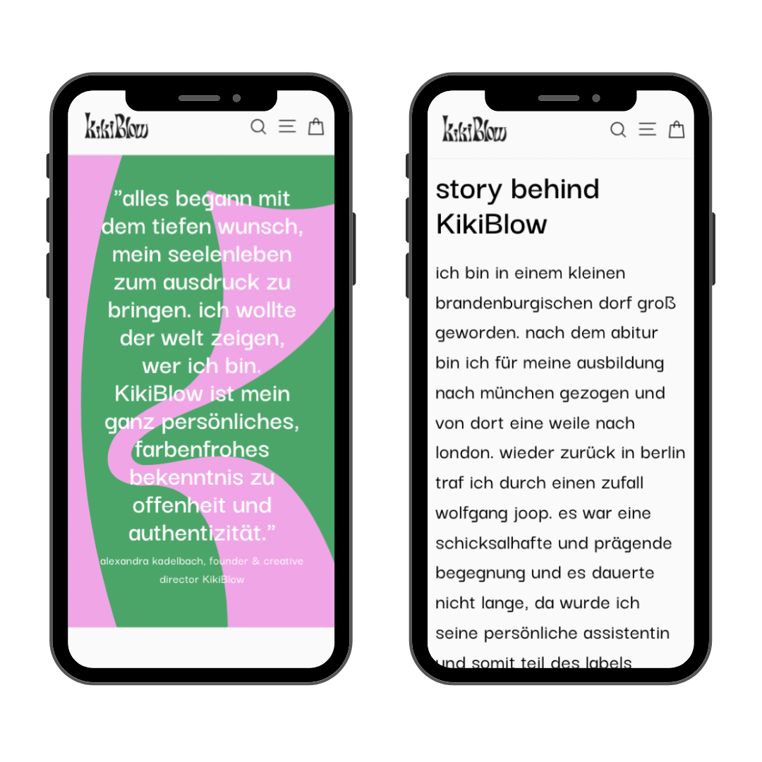 Die Typographie spielt eine zentrale Rolle im Branding von KikiBlow. Durch die Nutzung von individuellen Schriftarten konnte dem Shop eine ansprechende Optik verliehen werden.