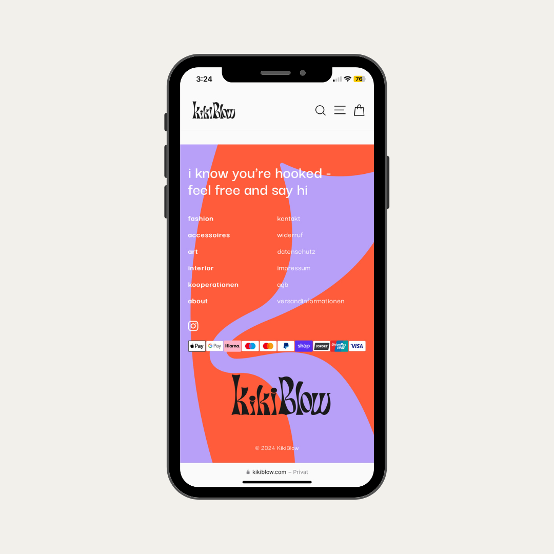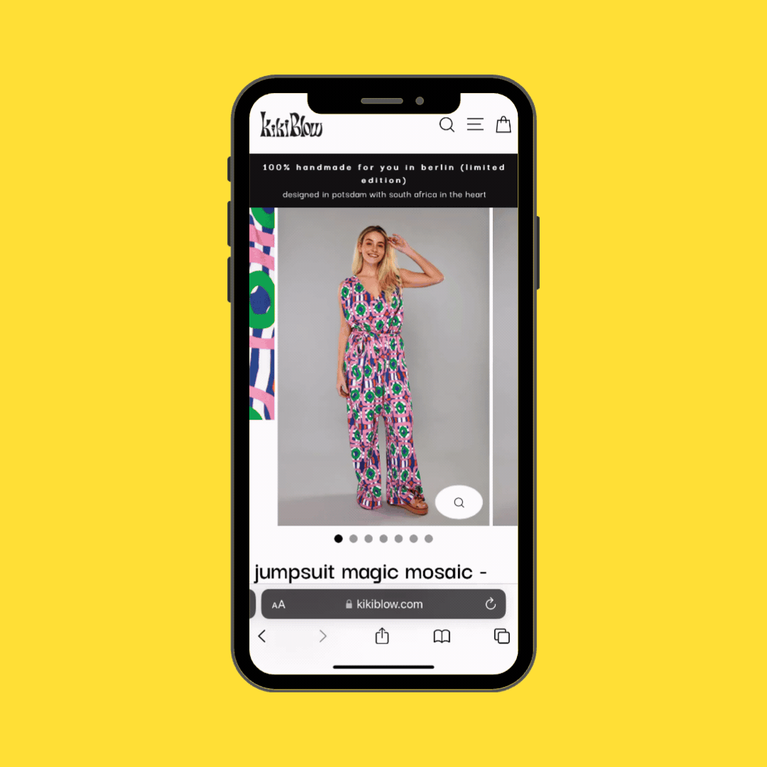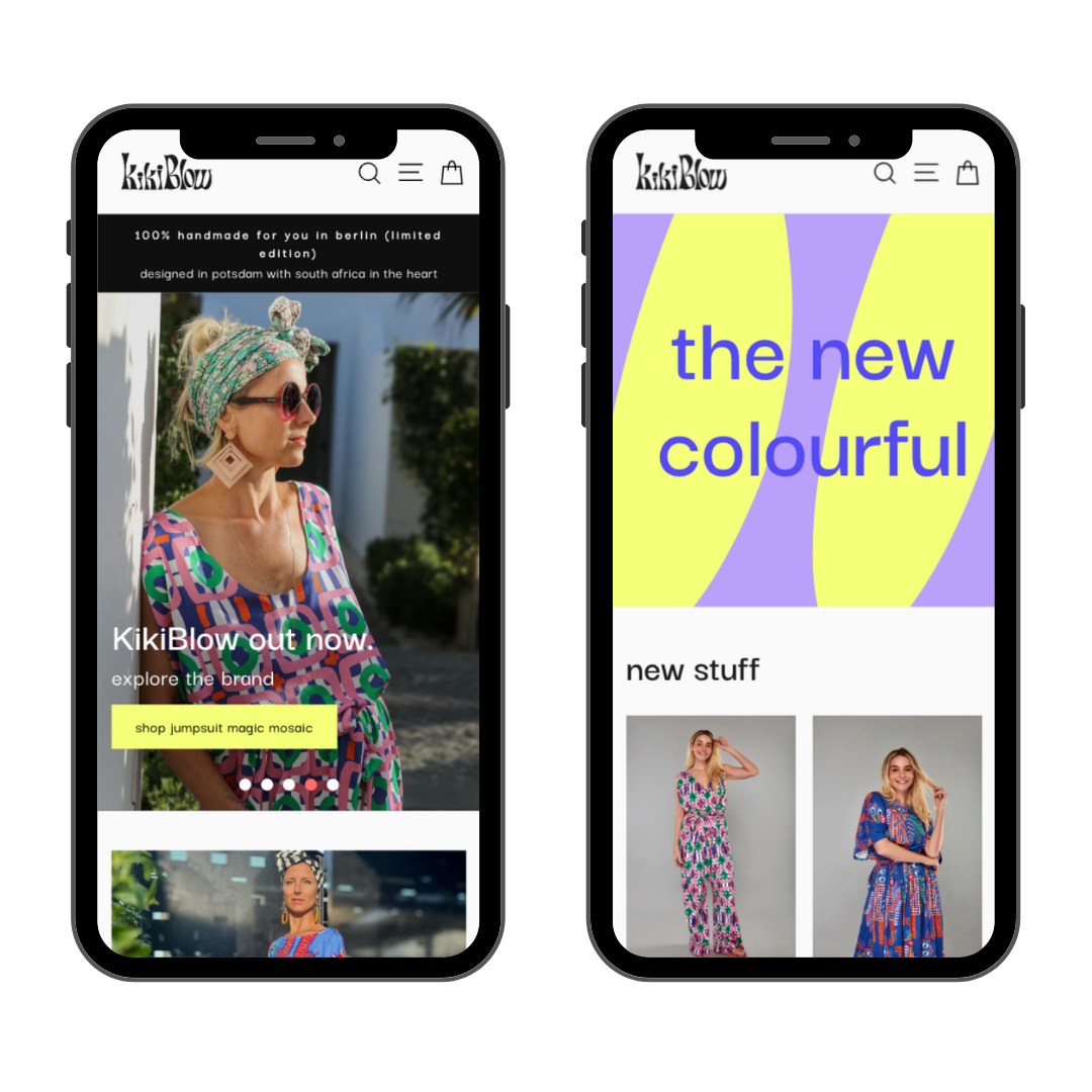 Da KikiBlow für aufregende Muster und Designs steht, war es in diesem Projekt wichtig, einen Shop zu kreieren, der diese Eigenschaften einfängt und authentisch widerspiegelt. Dank individuell gestalteter Elemente haben wir einen Custom Shop entwickelt, der die Vielfalt der Marke repräsentiert und nicht nach Template aussieht.