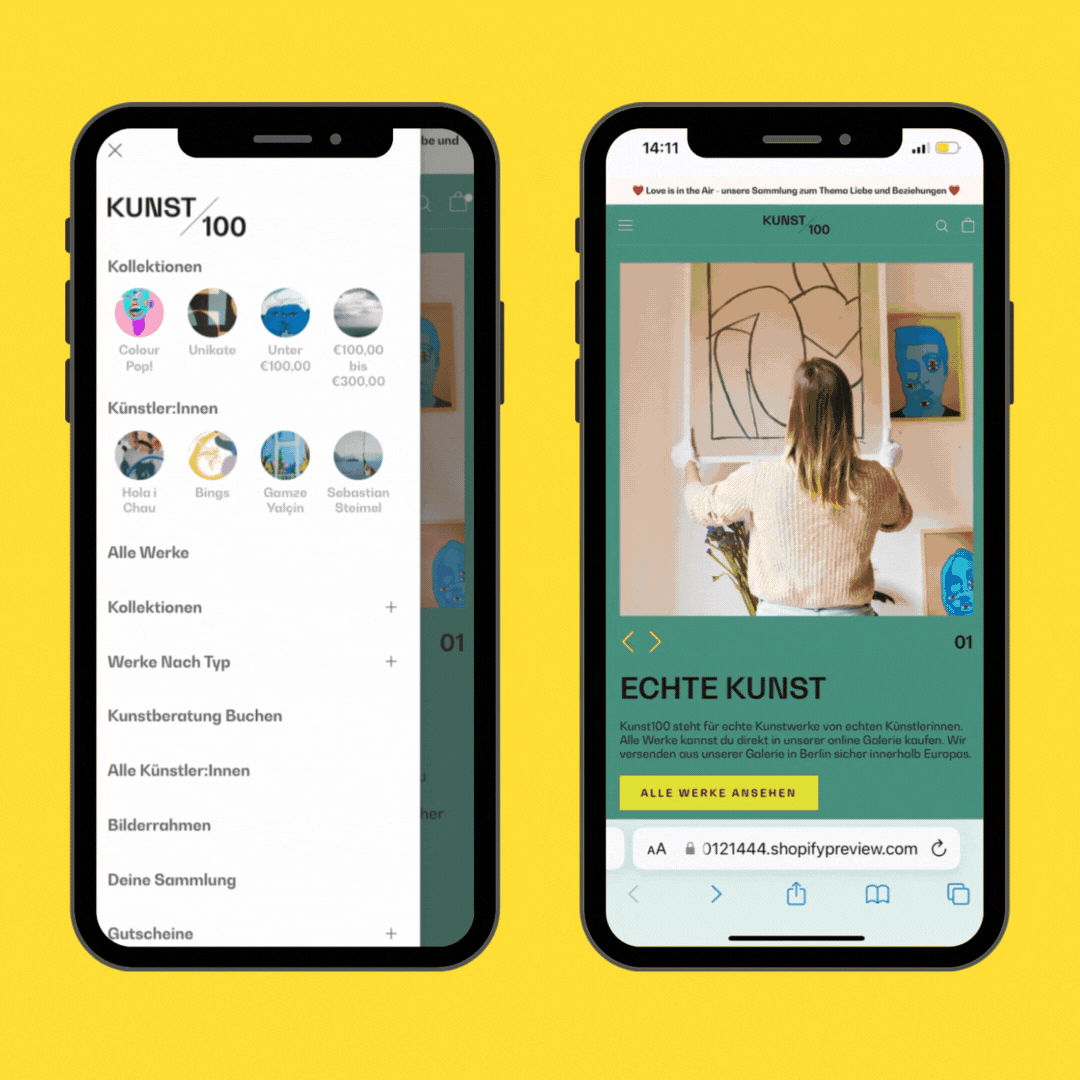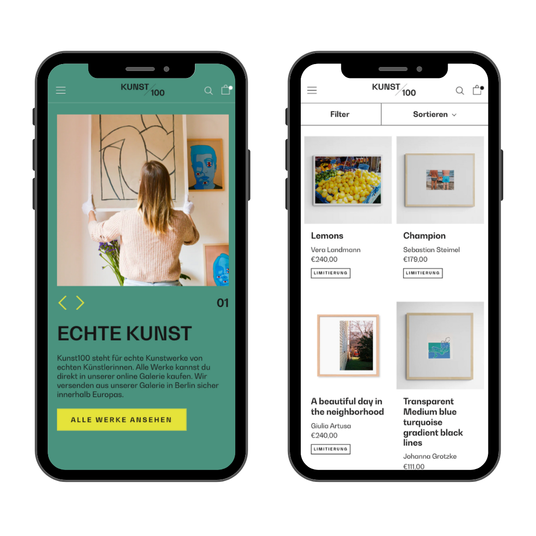 Kunst100 verkauft bereits seit einigen Jahren erfolgreich über Shopify und ebnete bereits vielen Künstler:innen den Weg in den Kunstmarkt. Dabei verfolgen sie stets das Ziel "Echte Kunst für alle".