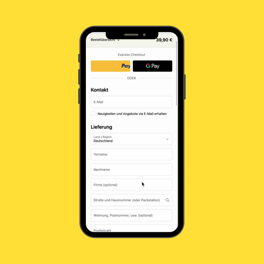 Im Checkout nimmt jedes Element Platz ein. Shop Pay war sehr präsent, wurde allerdings kaum verwendet.