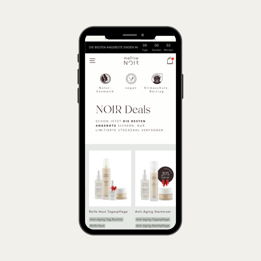 Im Rahmen der NOIR Deals im November haben wir den Fokus auf Dringlichkeit gelegt. Eine sticky Countdown Bar sorgte für Urgency und lenkte direkt zur Angebotsseite.