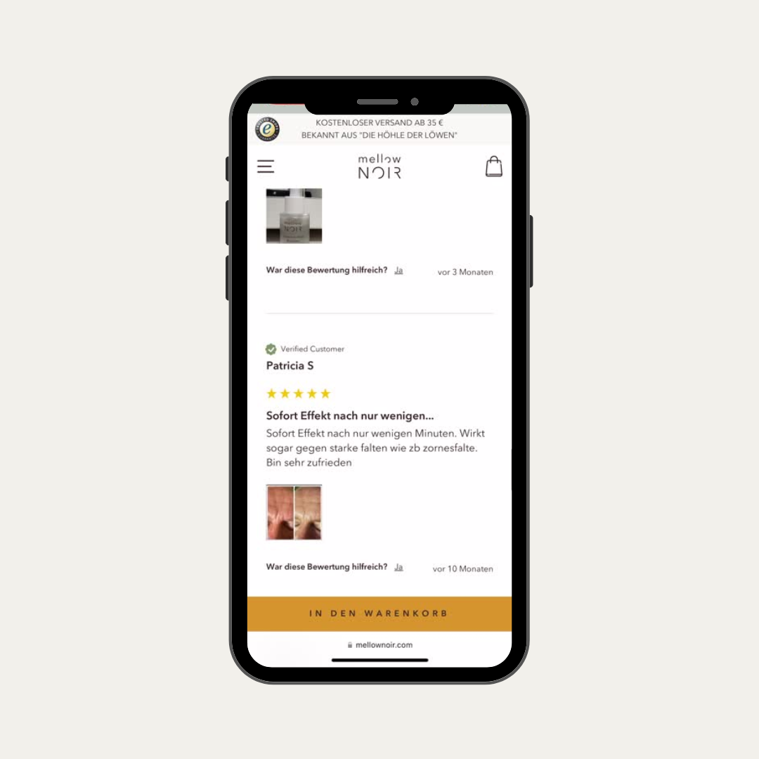 Wir haben das Bewertungs-tool judge.me durch reviews.io ersetzt. Der Fokus liegt jetzt stärker auf Reviews mit Bildern – für mehr Authentizität. Die Bewertungen erscheinen direkt auf der Produktseite und lassen sich in Klaviyo-Flows einbinden.