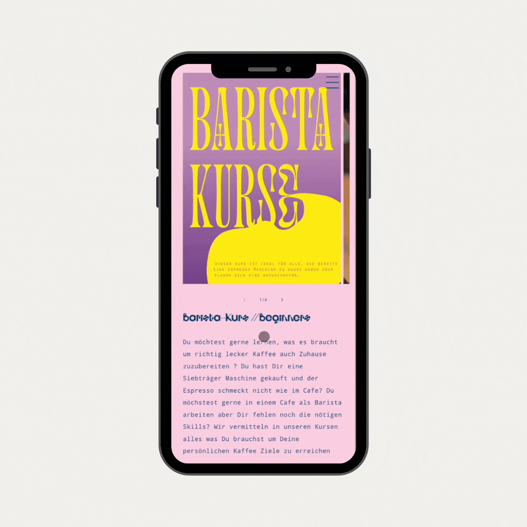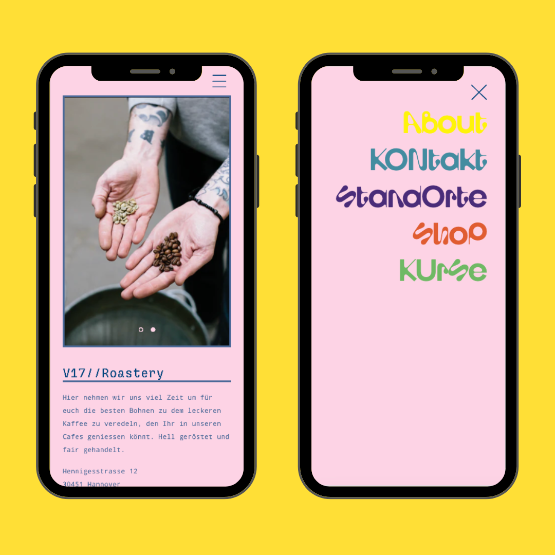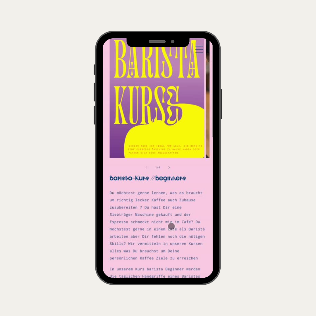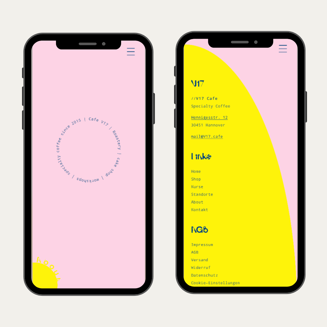 Um V17 auch digital zu einem besonderen Erlebnis zu machen, haben wir den Online-Shop von Grund auf neu aufgesetzt. Zuvor war die alte Website in Design und Funktionalität eingeschränkt. Durch den Umzug auf Shopify entstand ein maßgeschneiderter Shop auf Basis des Dawn Themes, der nicht wie ein klassischer Shop wirkt. Mit Custom Fonts, Farben & individuellen Sections haben wir den Shop so gestaltet, dass er das einzigartige Café-Erlebnis von V17 auch online widerspiegelt.