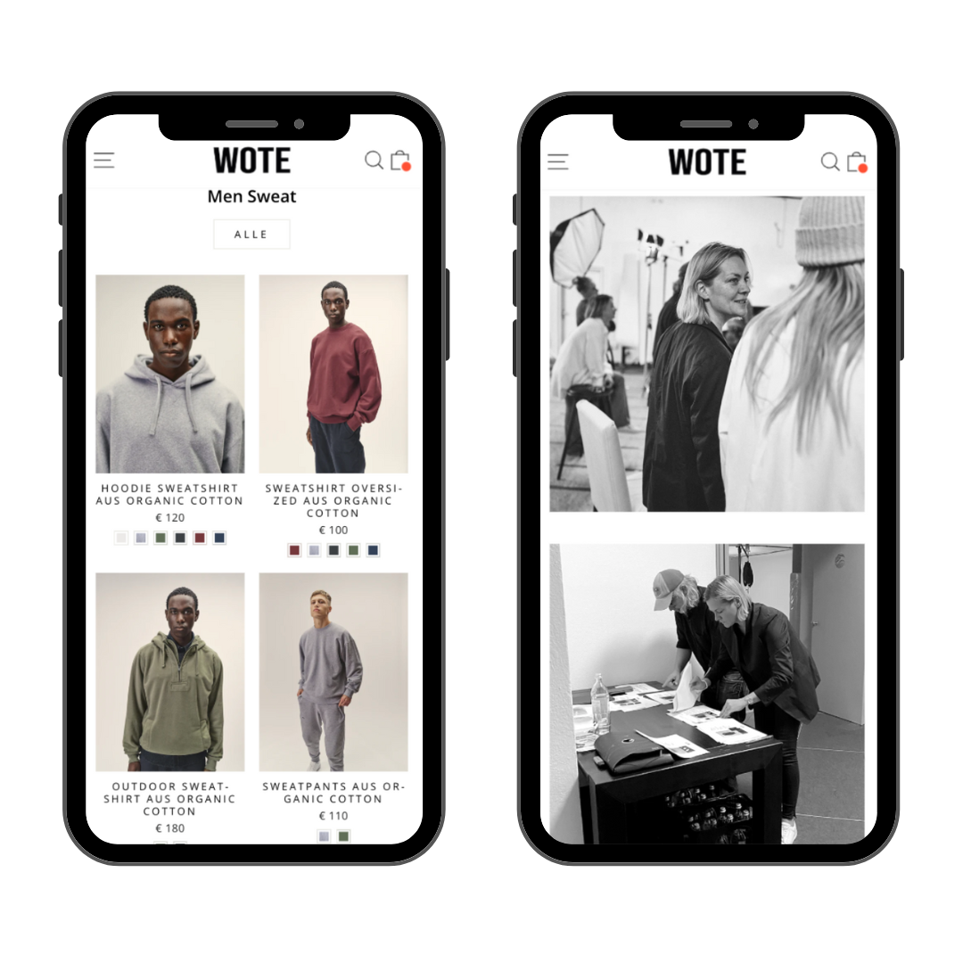 Bei der Entwicklung des Shops hat sich das Impulse Theme als perfekter Startpunkt herausgestellt, da das Theme bereits einen cleanen Look mitbringt, der gut zu WOTE passt. Wir haben bewusst auf technische Spielereien und Schnickschnack verzichtet, damit der Shop am Ende die Produkte gut repräsentiert: stilvoll und minimalistisch.